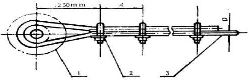 (2) 钢丝绳绳卡不少于3个。受力绳应位于卡扣座处,绳扣间距为150-200,末端钢丝绳长度不得少于200mm。