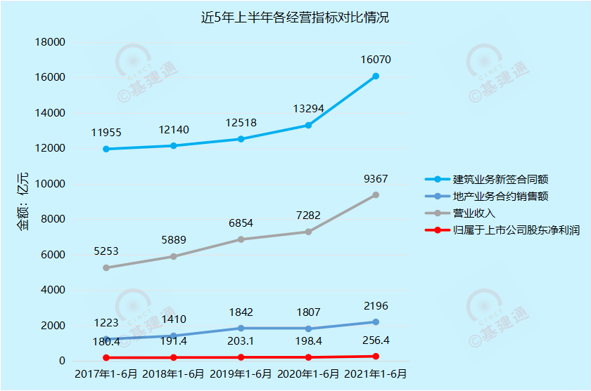 根据公告显示,2021 年上半年,中国建筑的经营业绩再创新高: