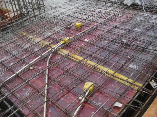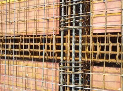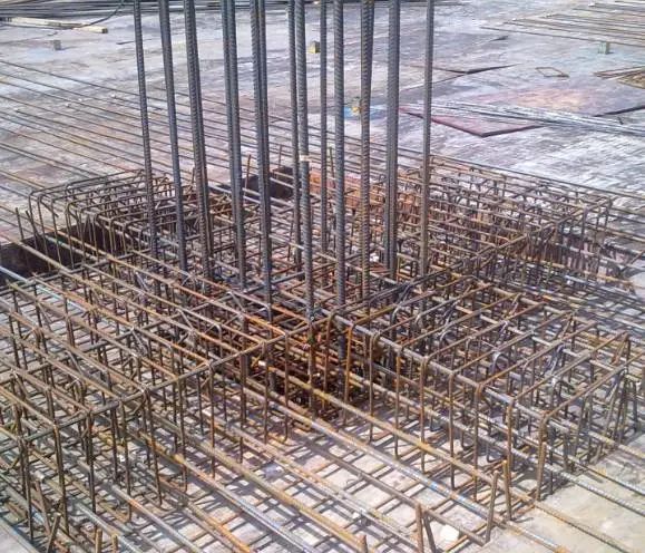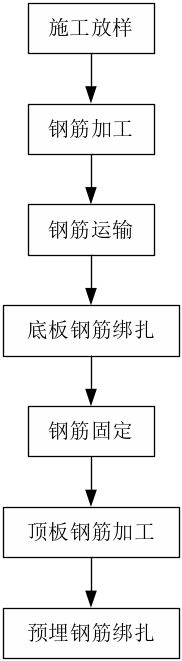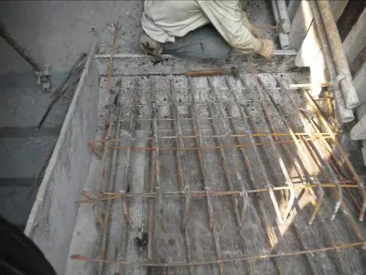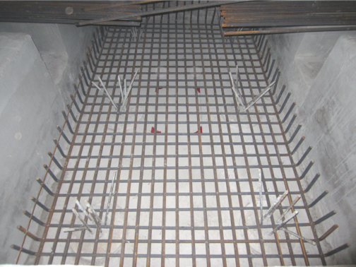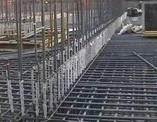 在进行顶板钢筋绑扎前应该现对该基础再次施工放样,即对已经的施工完成的钢筋绑扎进行检查,能确定基础的平面尺寸。根据放样进行顶板的钢筋绑扎。绑扎的工艺与底板的施工工艺基本一致。