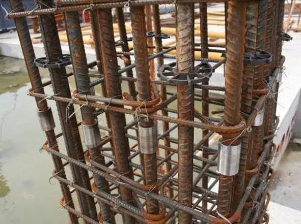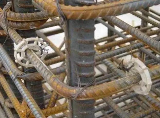 2)在钢筋外侧应绑上带有铁丝的砂浆垫块,以保证保护层的厚度。