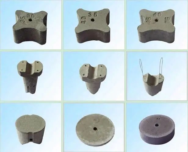 控制混凝土保护层用的水泥砂浆垫块、塑料垫块等。
