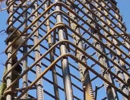 1)根据弹好的肋板(立柱)位置线,将肋板(立柱)伸入基础的插筋绑扎牢固,插入基础深度要符合设计要求,甩出长度不宜过长,其上端应采取措施保证甩筋垂直,不歪斜、倾倒、变位。