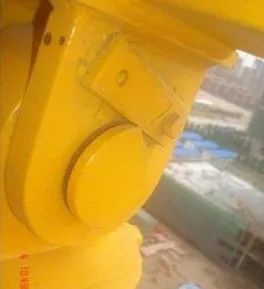 塔吊的长期运行中,销轴往外退,回转机构与套架脱离,塔吊发生倾覆。