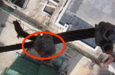 钢丝绳容易从绳卡中抽出,容易引起物体打击事故和塔吊倾覆事故。