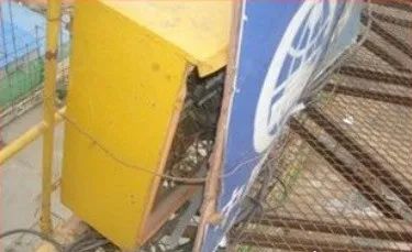 配重经常撞击后造成配重自身损坏重量减轻,整个塔吊不能平衡易发生倾覆事故。