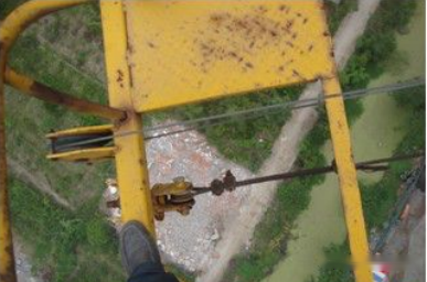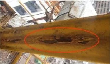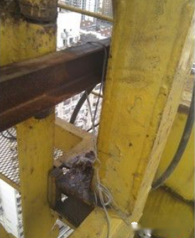 (2)原厂的斜拉断裂后,维保单位自行改装的斜拉。