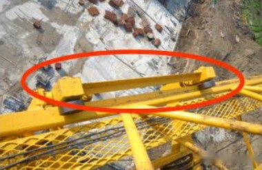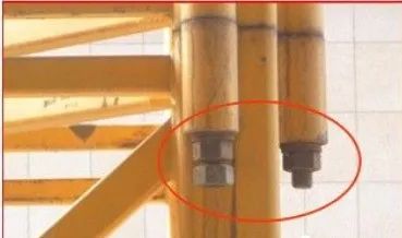这样的情况造成另外三个销轴受力不均匀,可能发生塔吊倾覆事故。