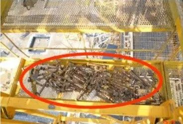 标准节联接螺栓堆积在顶升操作平台上。