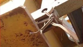 小车钢丝绳防断绳装置用铁丝绑扎。