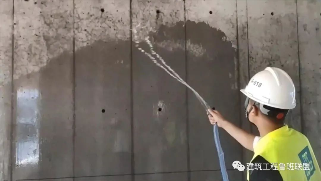 用水管对外墙进行洒水湿润,使螺栓孔周围保持湿润,避免因为剪力墙吸水影响防水砂浆的效果。