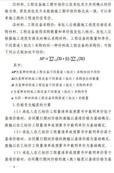 2.主要材料价格发生波动时,波动幅度在±5%以内(含5%)的,材料价差不进行调整;波动幅度超出±5%的,按照超出部分调整材料价差。