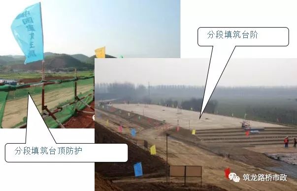 1)填筑前进行施工段落、施工层次划分,并将地基表层碾压密实,压实度不小于90%;