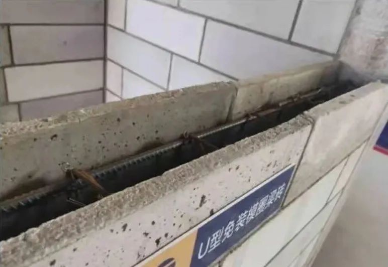 熟悉图纸提前规划→根据相关模数倒制U型砖→构造柱钢筋绑扎→U型砖砌块随墙体同时砌筑→混凝土浇筑。