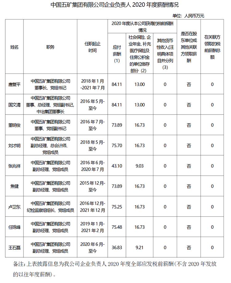 注:如有中央企业一把手在2020年内发生人事变更,该表优先选取2020年内在职时间较长人员。如需了解各中央企业所有负责人2020年度薪酬情况请在下方查看。