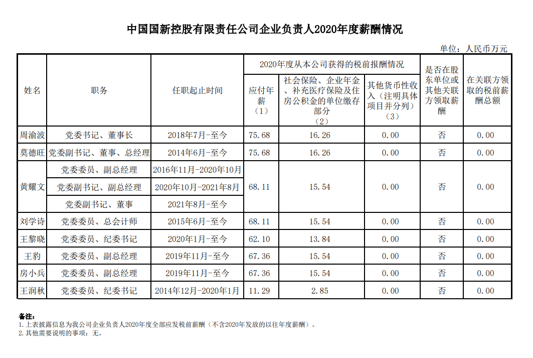 央企一把手的2020年度应付年薪明细,一起来看↓
