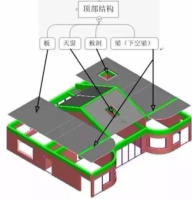 ◆室外结构:如果把挑檐雨篷归入顶层,那么屋面层的室外结构就不会有构件出现。
