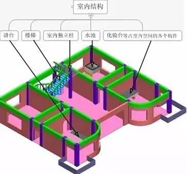 首层室内结构包含的构件可能有:楼梯、室内独立柱、水池、化验台等占室内空间的构件,见图3: