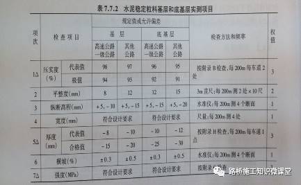 基层施工完成后,按《公路工程质量检验评定标准》(JTG F80/1-2004)和设计图纸进行检测和评定,检测合格后,才能施工路面,检验项目见下表。