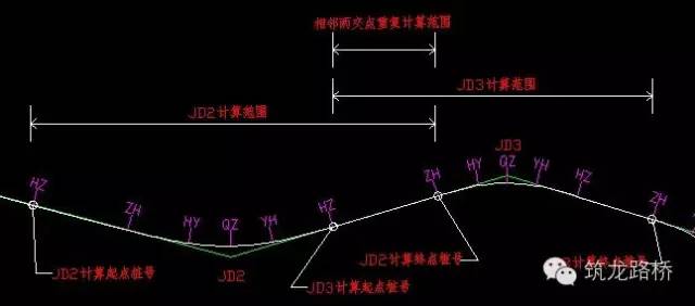 而交点的计算范围,则不再遵循从上一交点的HZ点开始,至下一交点的ZH点结束的规定,而改为: