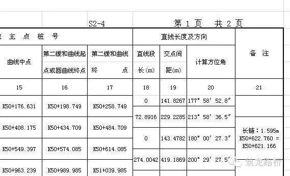 K50+622.760 = K50+621.166。很显然,这是一个等式,从数学的角度来看,等式显然不成立,不等于还差不多。但是,这不是数学等式,它表示的是新老桩号的交汇点(即断链点)。只要看懂了这个等式,就不管再标记什么长链、短链,长多少、短多少,不管在平面图、纵断面图上是否再有标记,一切都不重要了,换句话讲,你理解了这个等式,其它的你就可以自行确定了。