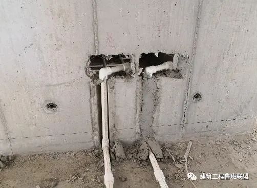 (2)冷热水管穿墙部位预留400*100mm矩形方洞,采用高强度挤塑聚苯板 作为模具,墙体拆模后,应及时进行清除聚苯板,修补管槽。
