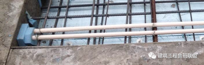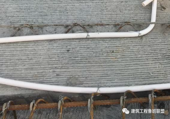 楼梯前室楼板内预留线管,按照乙字弯的形式将进入过梁的管道弯至平行于结构面,且略露出结构面。