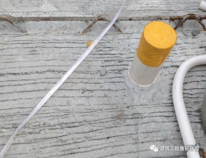现浇层混凝土浇筑成型后,按照给水管布置走向,在混凝土初凝前使用条形DN50的钢管在地面上预留管槽。管槽深度约1公分。