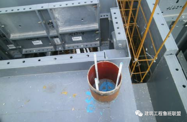 (2)套管通过内径加支撑的形式,固定在铝模上面,防止套管偏位。