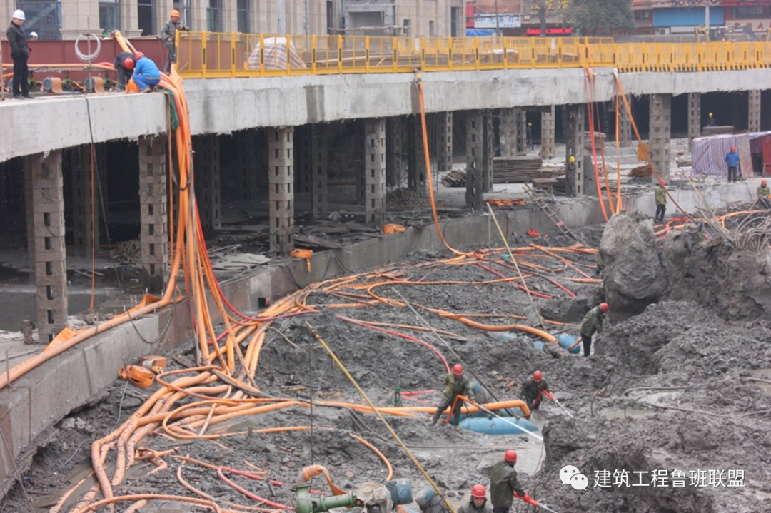 基坑土方开挖,我们所见的都是机械开挖方式,在施工过程中容易产生噪音及扬尘污染,同时需要大量的土方运输车,极易造成交通压力。那么,有一种新型土方开挖方式“水力冲挖”,你见过吗?中建三局二公司曾在武汉长江航运中心项目上开行业之先河,结合工程特点,创新采用“水力冲挖”方式,一起来见识一下吧!