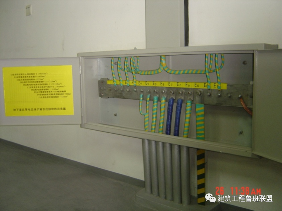 工艺说明:柜、屏、台、箱、盘的金属框架及基础型钢必须接地(PE)或接零(PEN)可靠;装有电器的可开启门,门和框架的接地端子间应用裸编织铜线连接,且有标识。金属导管与配电箱连接处必须做接地跨接,且各管路必须单独与汇流排或接地干线连接,不得串接。
