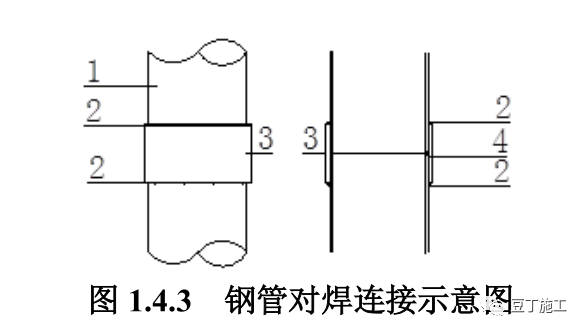1 -钢管混凝土格构立柱(内灌混凝土);2 -焊缝;3 -钢套管(壁厚与钢管相同);4;-钢管对接坡口焊焊缝;