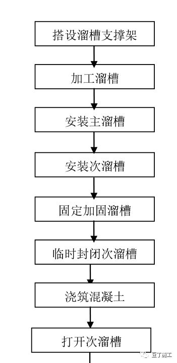 主溜槽宽 600mm,深 600mm,二级溜槽宽 500mm,深 500mm,三级溜槽宽 400mm,深 400mm,主溜槽入口处宽度为 900mm,以梯形尺寸向前过度,采用模板和木方组合而成,模板厚 15mm,木方为 50×100mm 标准木方,底部和侧面木方间距均为 200mm,溜槽加工及实景见下图。