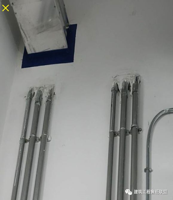 电管敷设半明半暗,与墙体体交接处粗糙。