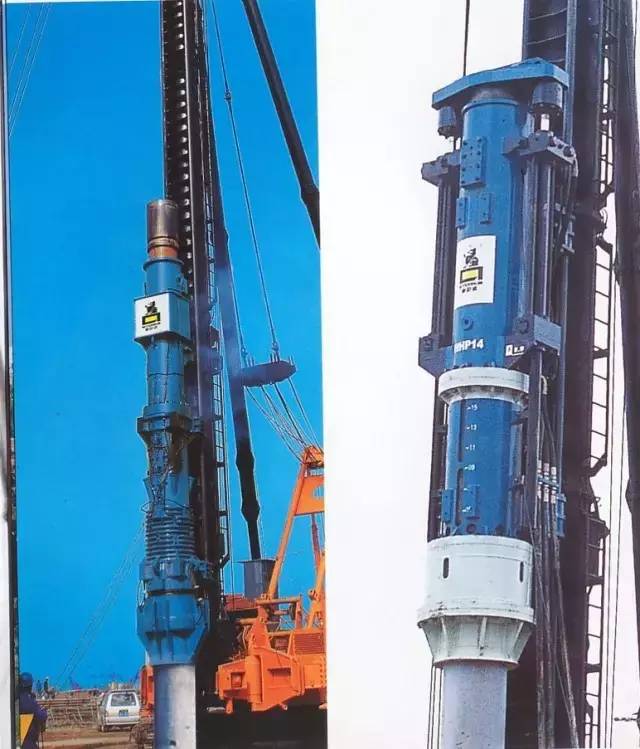 (2)柴油桩锤系列利用冲击部分自由下落的冲击能量和柴油燃烧爆炸的能量使桩下沉。它实质上是一个单杠而冲程柴油发动机。当活塞在下行而触及油泵压块时,就开始向锤座中央球槽中喷油;活塞继续下行至关闭吸排气时,空气被压缩,这是喷油与压缩过程。此后活塞下行,直到冲击锤座,产生强大的冲击力,使桩下沉。与此同时,喷入球槽中的柴油,在高温高压空气的作用下雾化,并着火燃烧。燃烧爆炸力一边将活塞向上推,一边对锤座产生压力。