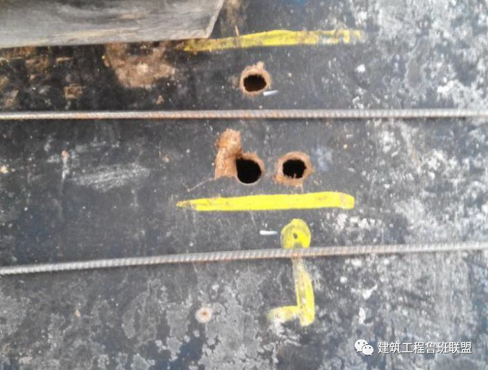 方案一:PVC电线管加直接,用钉子将直接固定在模板上替代模板开洞穿越。