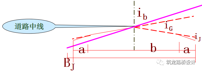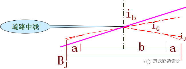 第二步,将外侧部分绕中轴(路中线)旋转,逐渐抬高外侧路面和路肩,达到单向的路拱坡度。所需要长度为x0