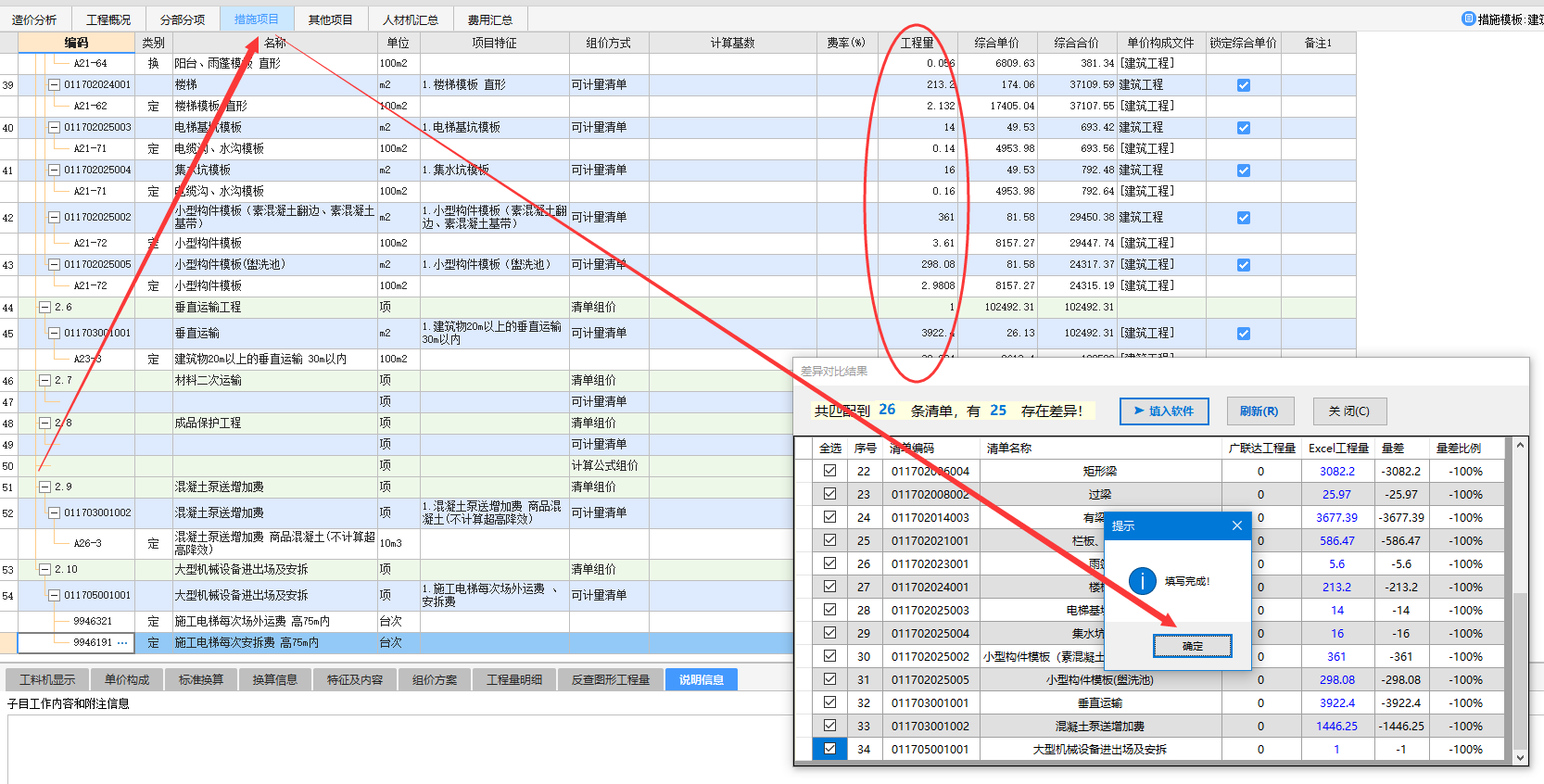 四、支持措施项目的对比和自动填写