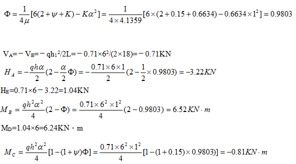 VA=-VB=-qh12/2L=-0.71×62/(2×18)=-0.71KN