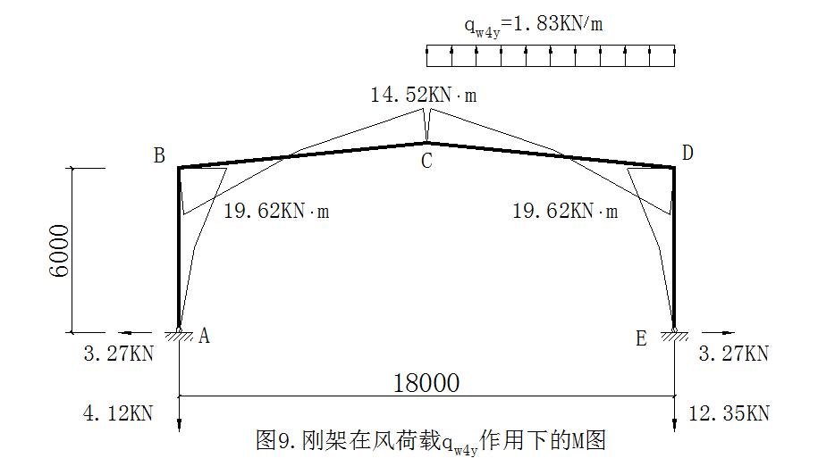 (2)在背风面横梁上风荷载竖向分力qw4y作用下