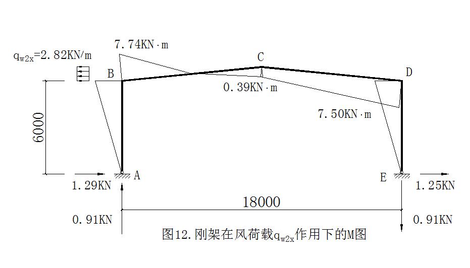(5) 在迎风面横梁上风荷载水平分力qw2x作用下