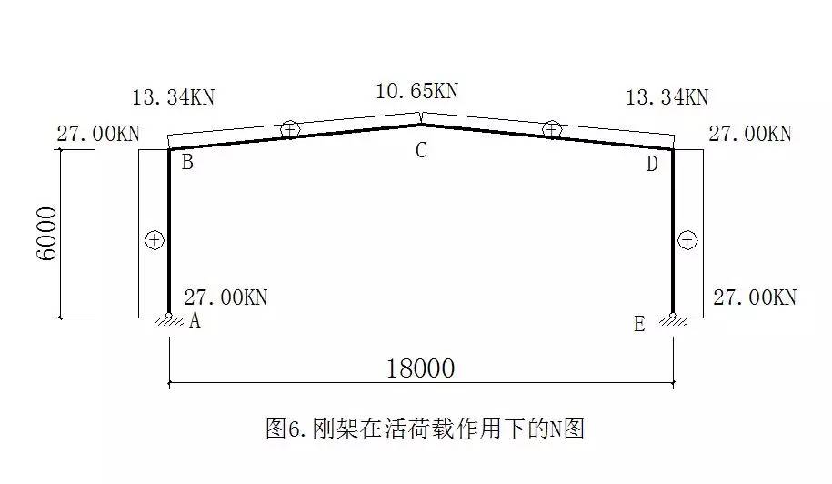 内力计算的“+、-”号规定:弯矩图以刚架外侧受拉为正,在弯矩图中画在受拉侧;轴力以杆件受压为正,剪力以绕杆端顺时针方向旋转为正。