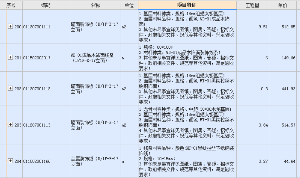 如图1所示:标准清单根据图纸内容,房间划分标准,清晰,列项清楚,特征描述完整,名称定义准确