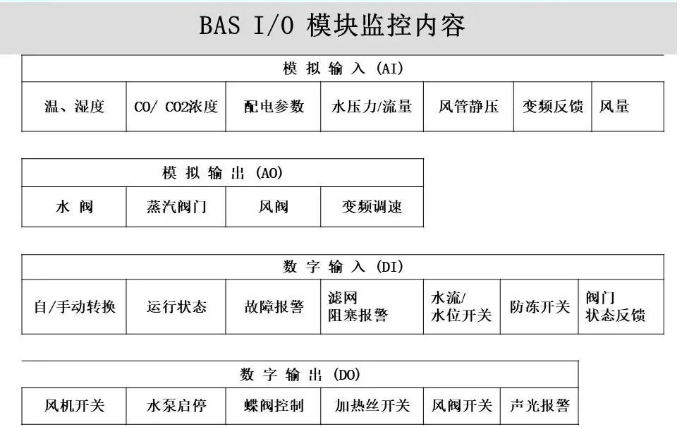 楼宇自动化系统(BAS)是智能大厦中的一个集成子系统,主要功能是实施对大楼内变配电、照明、电梯、空调、供热、给排水、消防、保安等众多分散设备的运行、安全状况、能源使用状况及节能管理实行集成监控、联动和管理。楼宇自控中的监控信息点位表是一张完整的用户需求表,监控信息点位表上会清晰告诉你用户需要对楼宇中的机电设备做什么样的监视和控制。要想读懂点表需求,抓住这4个要点。