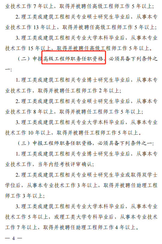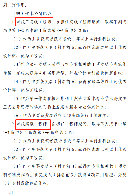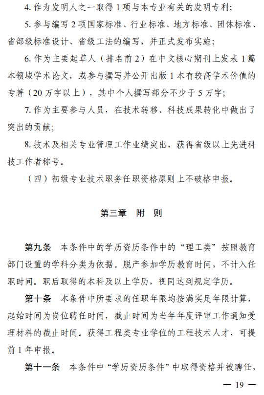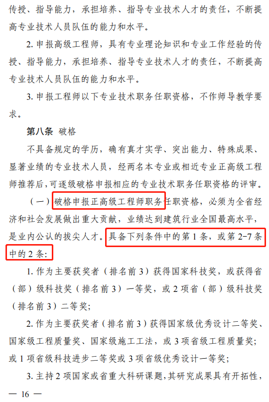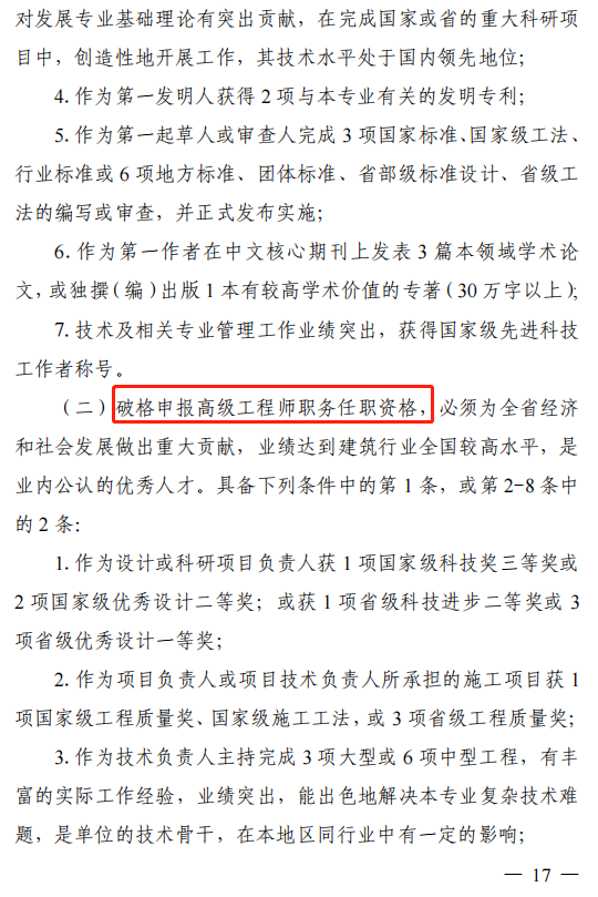 二、破格申报高级工程师和工程师职务任职资格条件,详见下方文件原文(P17-P19)。