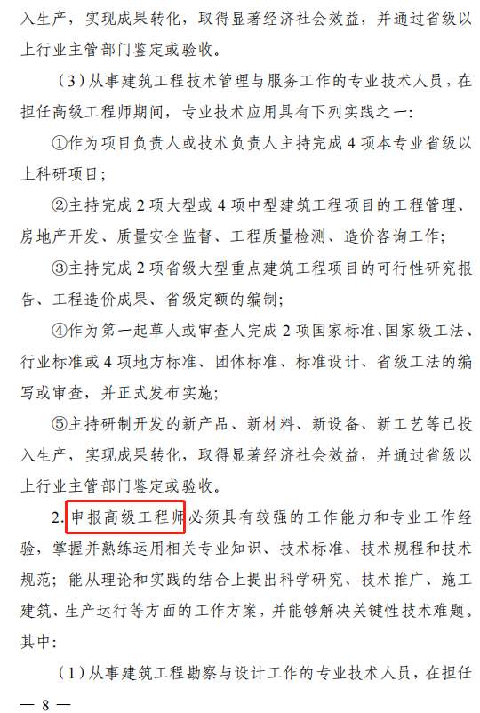 为进一步做好建设工程职称申报工作,更好为广大专业技术人员提供服务和指导,根据《安徽省建设工程专业技术资格评审标准条件》(建人〔2019〕87号,以下简称《标准条件》)等有关规定,经商省人力资源社会保障厅同意,结合我省建设工程实际,现就职称申报有关事项进一步明确如下: