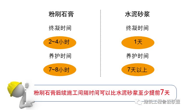 相较于水泥砂浆的施工工艺,在终凝时间和养护期上,石膏砂浆所需的时间大大缩减。这样,可以使下一道工序提早进场,能够较明显的缩短抹灰与饰面层施工间隔周期,从而为业主和总包方节省相当可观的时间和费用,尤其是工期比较紧的工程。