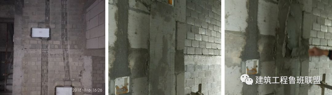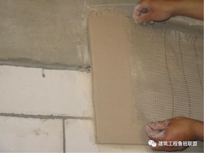 水电敷设多数为二次开槽,墙面开槽后的防空鼓开裂修补为一大重难点,为避免出现后期空鼓开裂隐患,开槽修补使用专用抗裂砂浆,抹灰前使用玻纤网按工艺要求标准挂网处理。