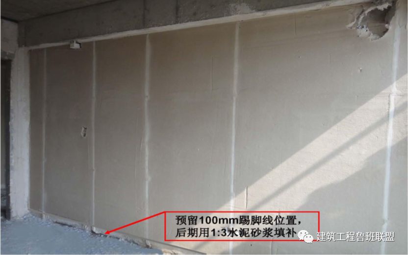 12、客餐厅底部预留踢脚线位置用水泥砂浆封堵