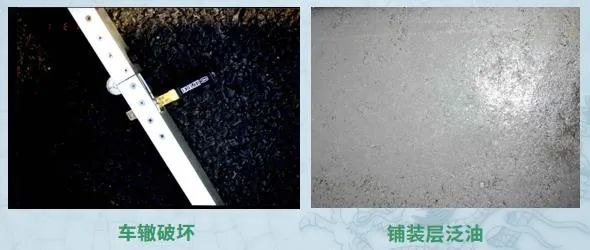 铺装病害主要表现形式:坑凼松散、车辙推拥、开裂