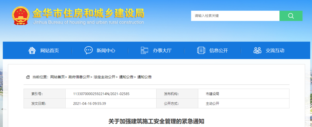 今日,金华市住建局发布《关于加强建筑施工安全管理的紧急通知》。